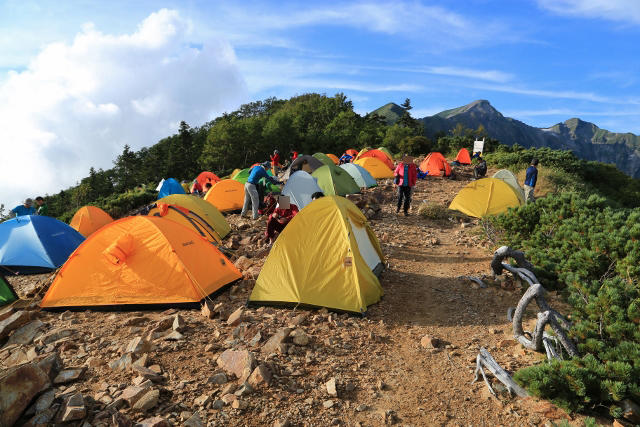 山頂からの絶景を満喫した後、テン場へと戻り、テントを撤収して扇沢へ帰ります。
