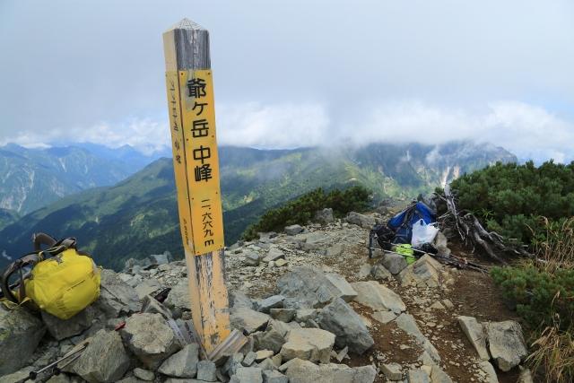 前日にスルーした爺ヶ岳の中峰に立ち寄りますが、残念ながらガスが多く、遠望には恵まれませんでした。