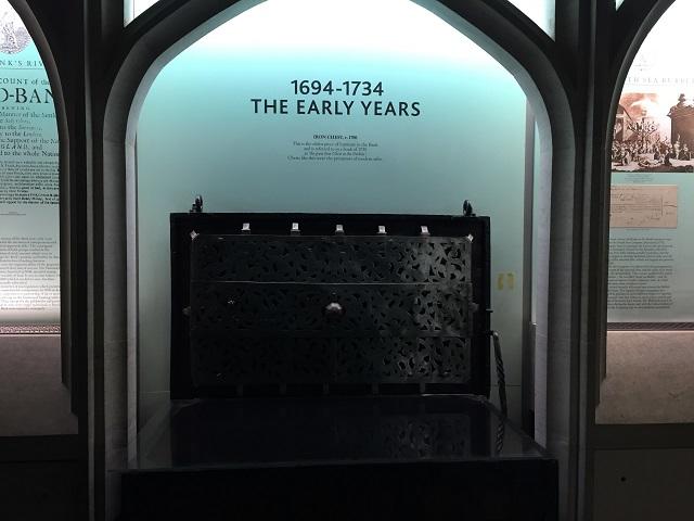 創設まもない1700年代の金庫は、鉄製のチェスト。かのイングランド銀行も、始まりはタンス貯金だったのかな?とか。笑