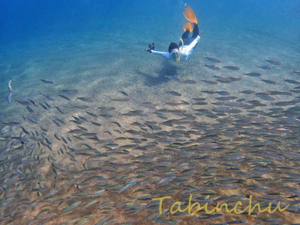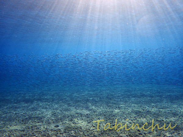 最近ビーチにイワシの大群が押し寄せています。
