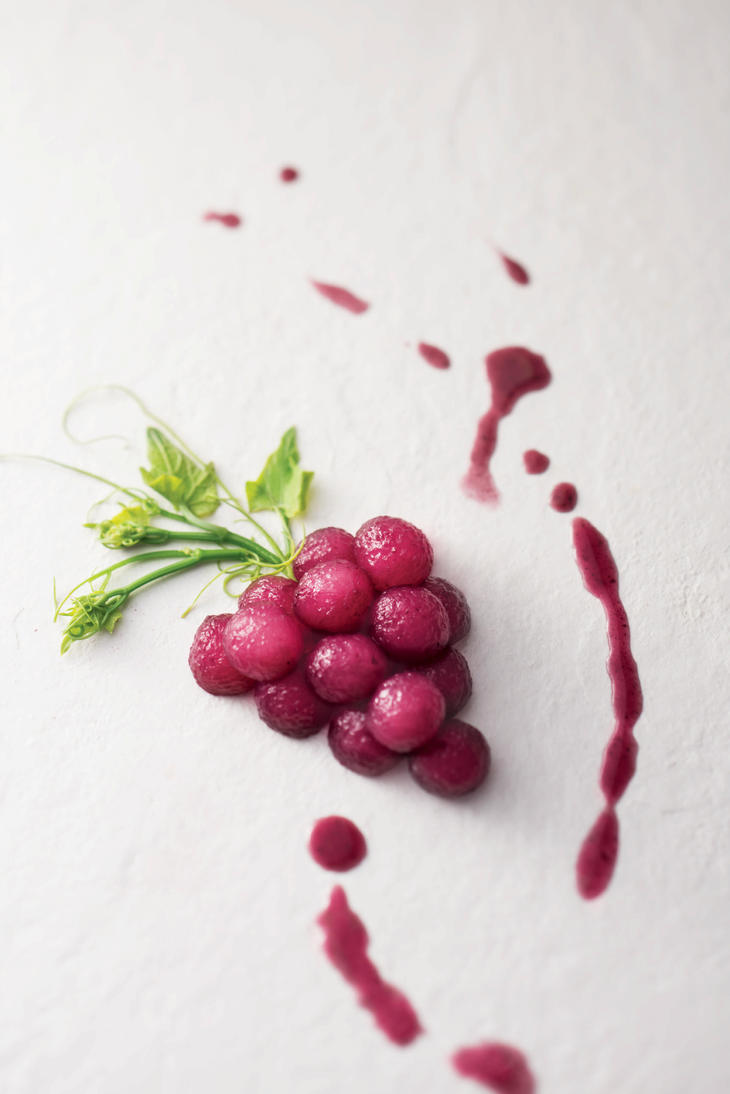 そんな感じのお店ですが、出てくる料理は、伝統的な広東料理の調理法でありながら盛り付け方などを工夫しているので、これまたモダンな料理がいくつもあります。例えば、「藍苺冬瓜(Berry Winter Melon)」(69ドル)は、見た目はすっかりブドウです。実際は冬瓜でてきていてブルーベリージャムなどで味付け。ほどよい甘酸っぱさがあり、食感は本当にブドウにそっくりなほどの柔らかさに仕上がっています。「啤焼元蹄(24 hours Ale-Braised Pork Knuckle & Rice)」(6人用、399ドル)はその名の通り24時間豚の膝肉をじっくり煮込んでご飯の上に載せた料理です。6人用と大人数で訪れた時はぜひ試してみてください。