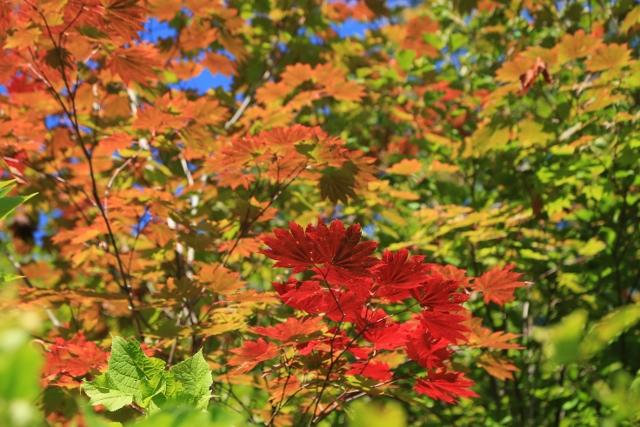麓の紅葉はまだまだこれからですが、所々に色付いた木々も見られます。