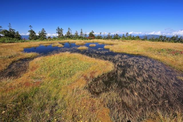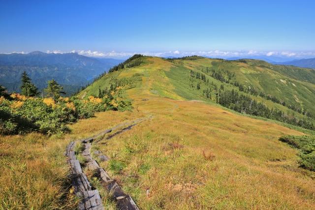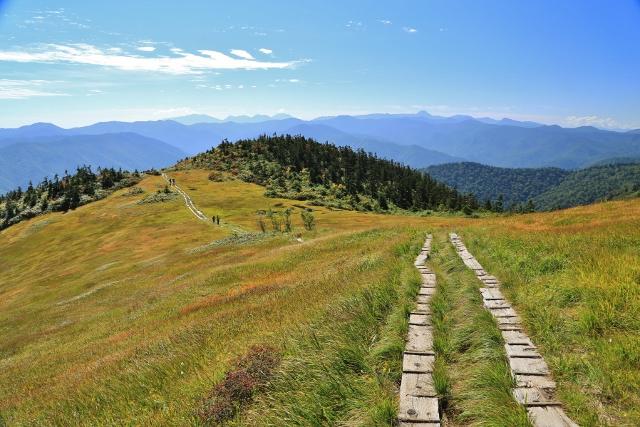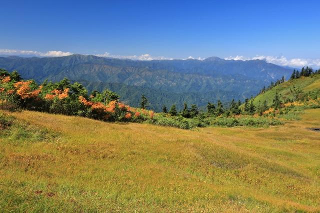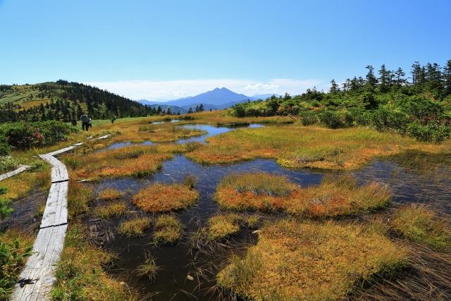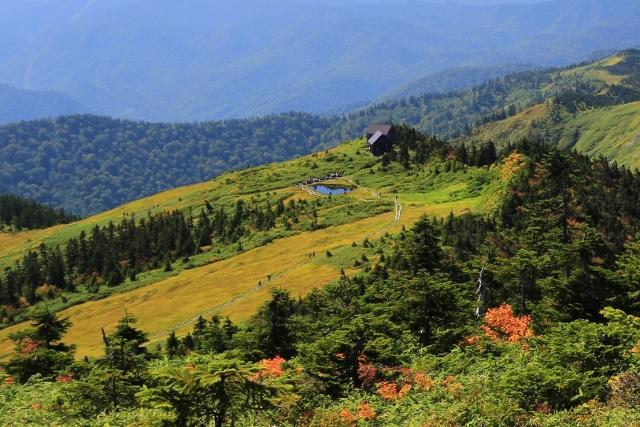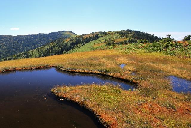 見頃を迎え始めた草紅葉広がる山頂一帯と、池塘や湿原に覆われた中門岳周辺を巡ります。