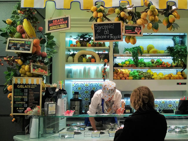 ↑ 南イタリアの甘いお菓子を売るカフェのジェラート!