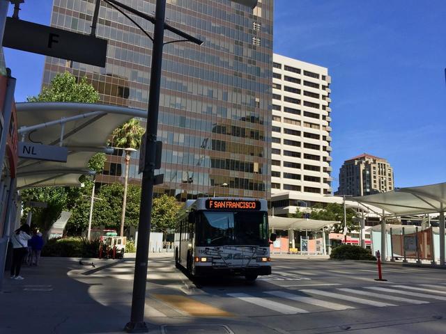 ソーマ地区にあるトランスベイターミナル(Transbay Temporary Terminal)は中長距離バスの発着所。 グレーハウンドやアムトラックの連絡バスもここから出てる。 ベイブリッジを渡ったイーストベイ(East Bay)とサンフランシスコ間を運行しているのがエーシートランジット(AC Transit /Alameda-Contra Costa Transit)エメリービル、オークランド、バークレーを走っているのが “Fバス” この路線、UCバークレーに通っている人が時々利用しているみたいで噂には聞いていたので今回Fバスでバークレーに行ってみた。
