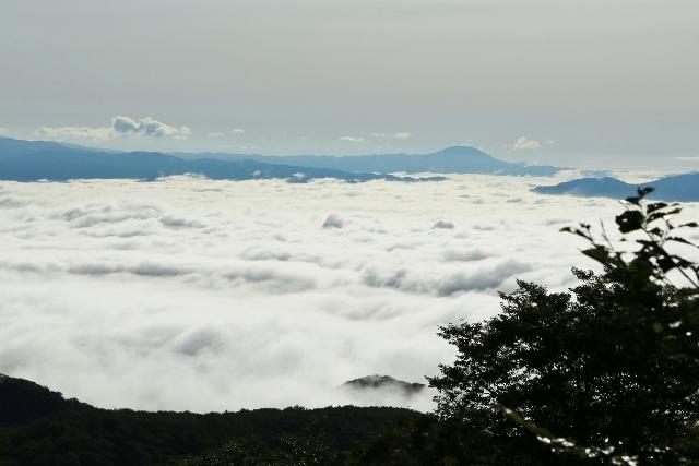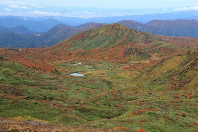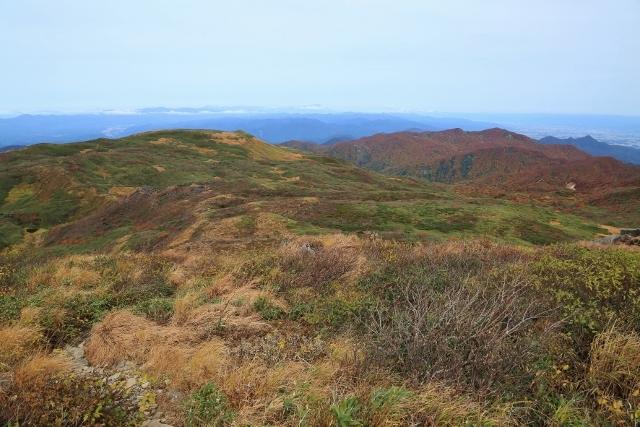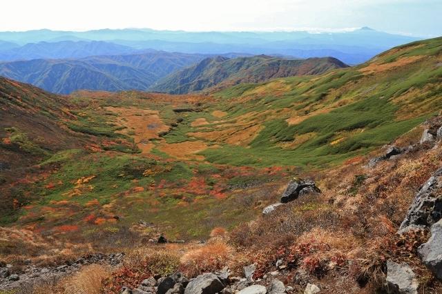 横岳分岐から小岩沢上流域を俯瞰します。月山や鳥海山も見えています。