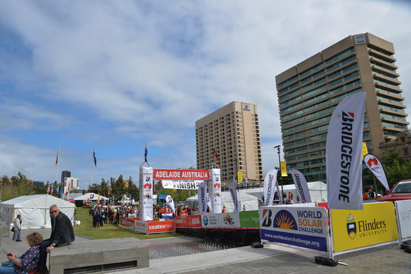 最終日はすべての車が集結、朝からお天気がよく充電もできた車はアデレードの中心部から約3キロをパレードして約1週間に渡って行われたブリヂストン・ワールドソーラーチャレンジが終了しました。次回は2019年の予定です。