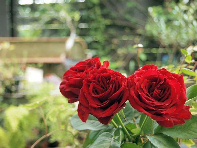 薔薇の花をテーブルに置いてくれました。