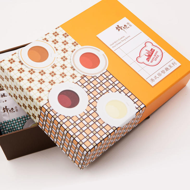 今では、「茶餐庁系列」、「其他系列」と計3つのラインまで増えました。最初の「茶餐庁系列」がこれは「コーヒー」、「ミルクティー」、「口どけミルク」、「オバルチン」の4つの種類が4枚ずつ計16枚(180ドル)が入っている物です。茶餐庁とは、中華料理から西洋の料理まで幅広く食べられる香港ならではのスタイルで、4つの味は、この茶餐庁で人気の飲み物をクッキーにしています。