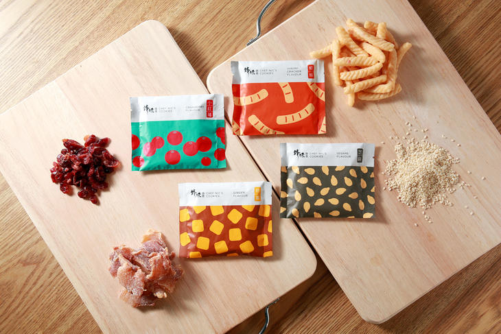 「其他系列」は「クランベリー」、「ジンジャー」、「ごま」、「エビクラッカー」の4種類でそれぞれ5枚入り60ドルです。これは素直に、クッキーに合う味を開発したという感じです。5枚入りなので買い求めやすいと思います。「鋒味産品」というラインもあるのですが、こちらはエプロン(160ドル)や鍋つかみ(70ドル)などが売られています。