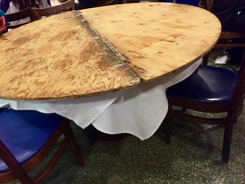 ① 4人がけの四角いテーブルの上にまるい板を乗っけた!