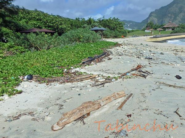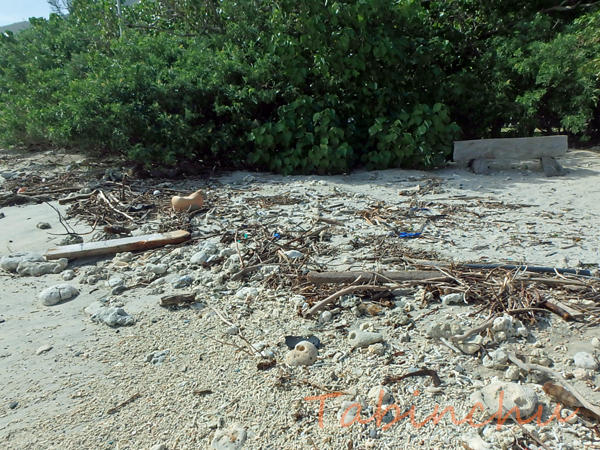 海岸には漂流物が打ち上げられ台風のウネリも届いています。
