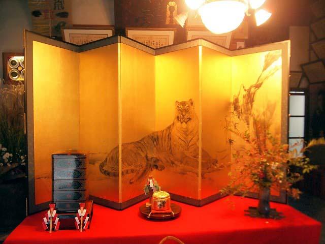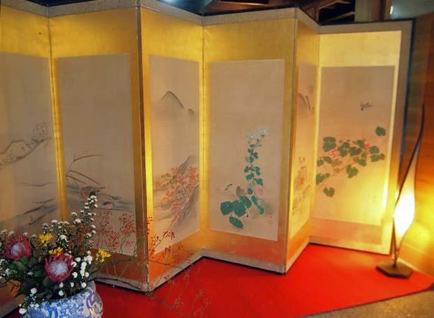 それぞれのお宅が先祖から伝わる屏風を飾る