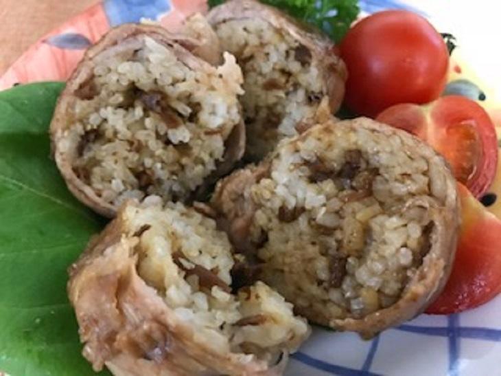 (皆でわいわい食べるのも良し!お弁当にも良し!の(しぐれ肉巻きおにぎり)。)