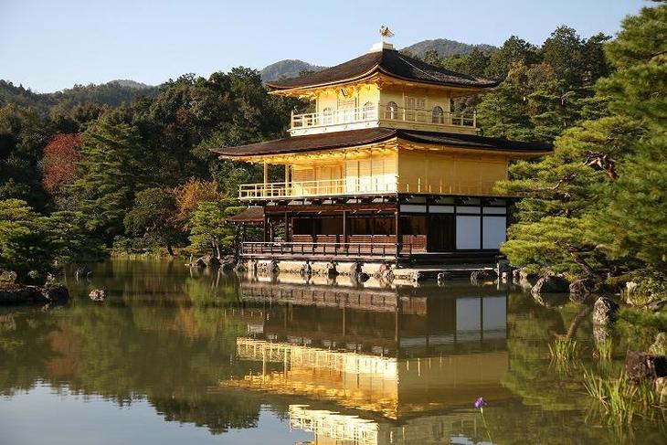 水面に、金閣寺が映る池の名前は、鏡湖池(きょうこち)。