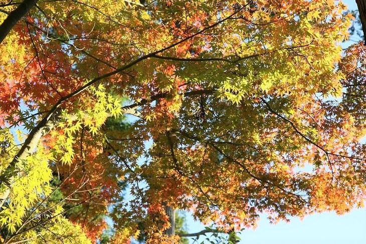 色づき始めた紅葉の中に、眩しい光を放っています。