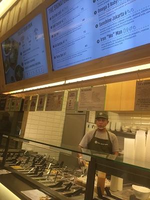 メニューはシンプル、サラダORラップ(15種類ぐらい)。あとはグラノラ・シリアル系(キヌアメニュー有)。