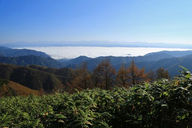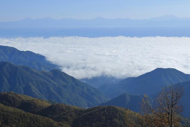 往路で見えていた雲海が消え去り、遠く飯田市街地方向が見渡せました。