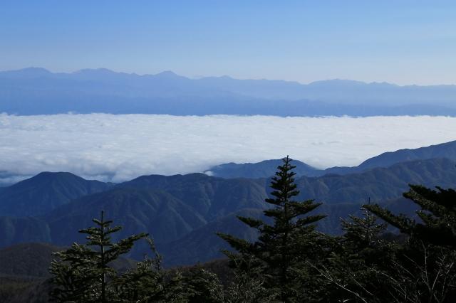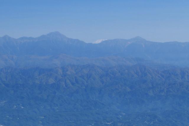 左奥は、白根三山から塩見岳に掛けての稜線です。
