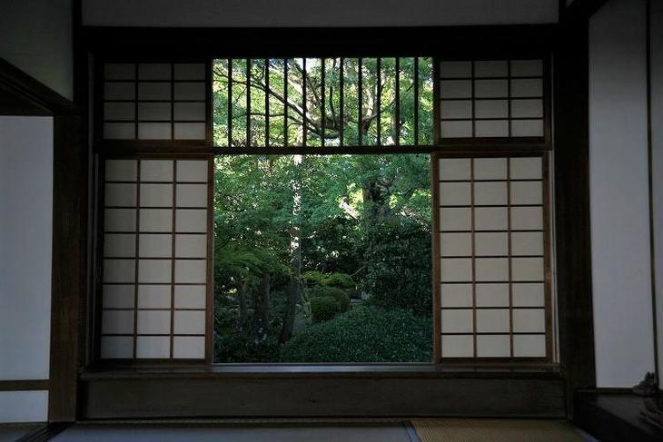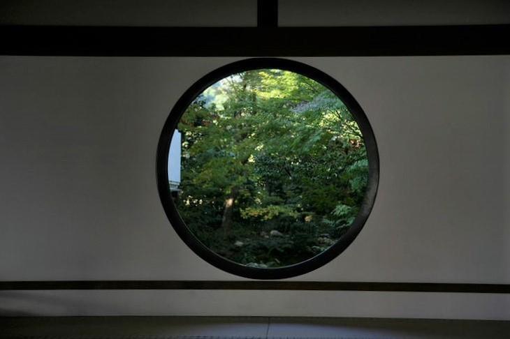 本堂に入ると、禅の境地を表す窓が二つ。左右に隣り合っています。