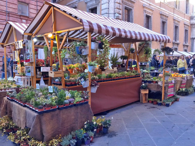 ↑ 前回の記事でもお話しましたが、イタリア中部で最大規模を誇るこの青空市場は、歴史的には1260年に起源を持ち、屋台の数は今日では500にも上ります。とても楽しい市です。この死者の市のメイン会場は、ペルージャの街の中心部からほんの少し離れたレナート・クーリ・スタジアムなどがある場所の広場ですが、駅前広場や町の中心部の旧市街の目抜き通りでも展開されています。