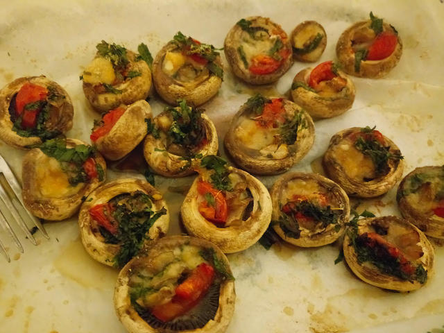 ↑ こちらも前菜の中の一品です。きのこにミニトマト、パルミジャーノチーズ、イタリアンパセリをのせてオーブンで焼けば最高のご馳走になります。赤、白、緑とイタリアの国旗の色(トリコローレ)になっています。