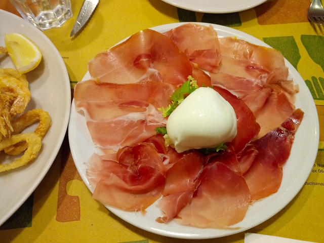 ↑ 水牛のモッツアレッラチーズとプロシュット(生ハム)です。