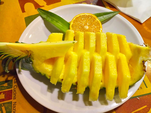 ↑ デザートのパイナップルです。メニューにある”季節のフルーツ”の中から幾つか選べます。とても甘くてジューシーでした。