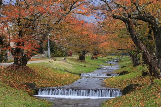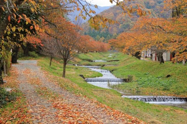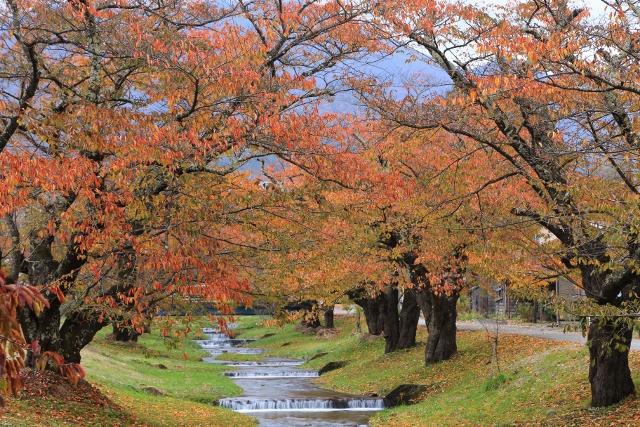 約1kmに渡って続く桜並木は、目下、美しい秋色に彩られています。