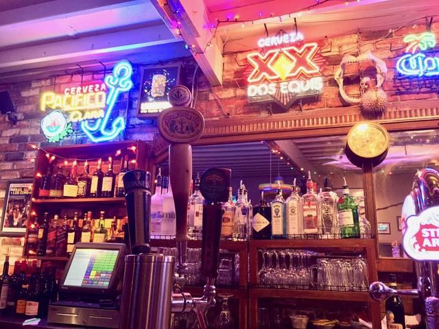 テーブル席も7〜8つほどあり、平日の夜(早い時間)という事もあって比較的空き空き。 50年代はこの店(釣り用?)エサを売っていたそうで、今は室内や屋外でレストランとなってい平日はシーフードを中心にしたアメリカンをサーブしている。