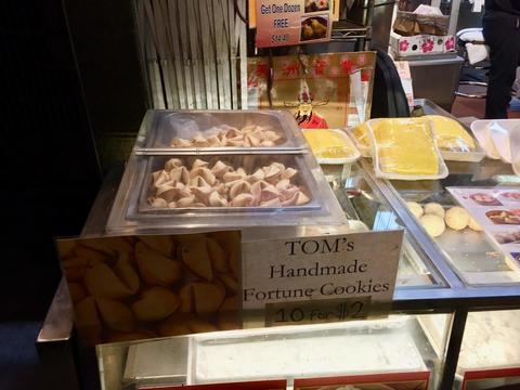 フォーチュンクッキー10個で2ドル 店の看板は "ディック(Dick)" しかし、『Tom"s Handmade Fortune Cookies 10 for $2』 ディックさんの店でトムさんが手作りしているクッキーってややこしいが、そこらへんがチャイナタウンっぽい。