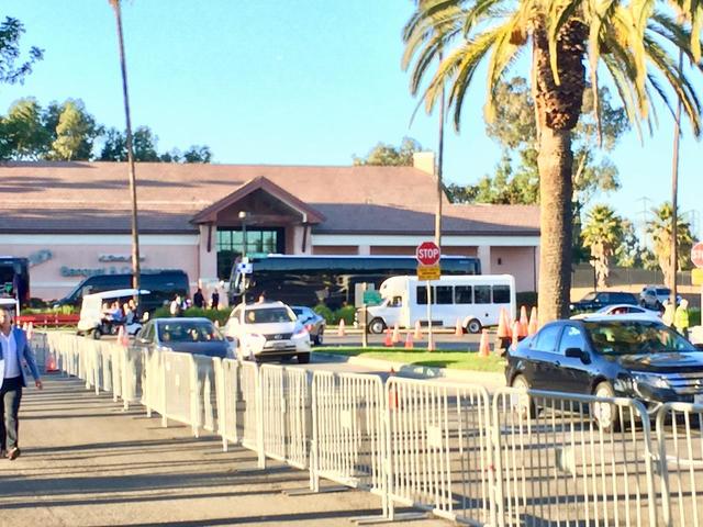 集合場所・時間が、ユニオンスクエアのセントフランシスホテル10:30 大型バスが駐車待機できるのがポスト通り側、そこで待っていたら大きなトラックが3台イベント準備の為の作業をしていた。 ゆえにバスは隣のブロックで待機していた ⇨ これが止むを得ず場所が変わる事もありますって事