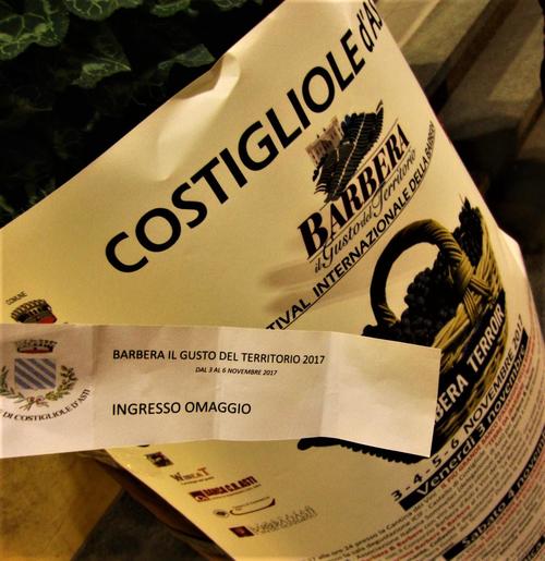 私が非常勤講師を務める料理専門学校のあるCostigliole d'asti (コスティリオーレ ダスティ)にてバルベーラ祭りが開催されました。招待券を配給されたので友人、知人を誘いいざ出陣!