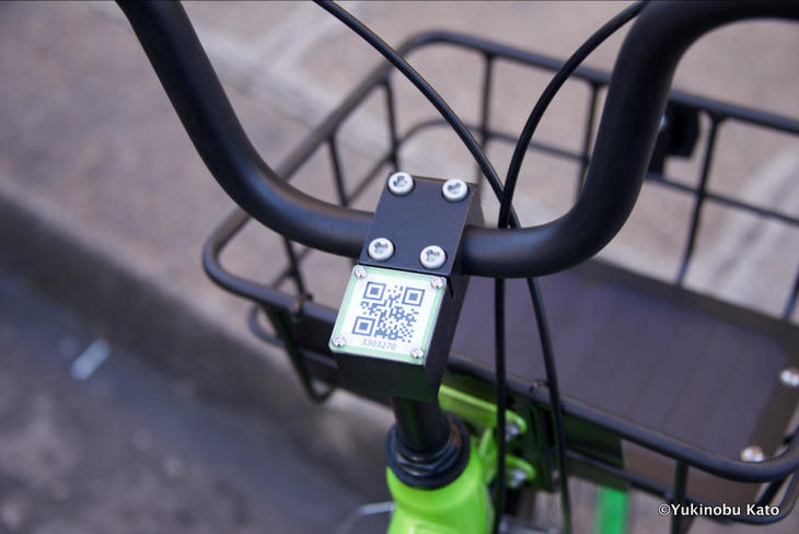 入金が終われば、いよいよレンタルです。アプリの地図を頼りに最寄りの自転車まで行き、ハンドルまたはサドルの下に付いているQRコードを読み取ります。