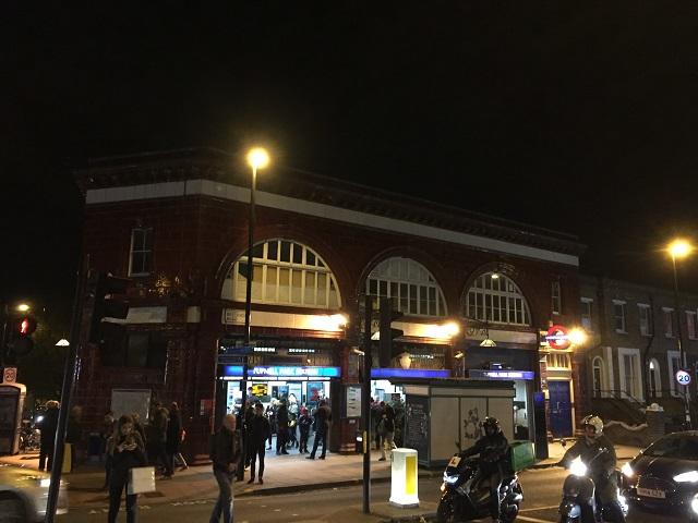 1つしかない改札口を出たら、右手に見えるパブ「ボストン・アームズ(Boston Arms)」の方に向かうと、そこがダートマスパーク・ヒル(Dartmouth Park Hill)」という道。