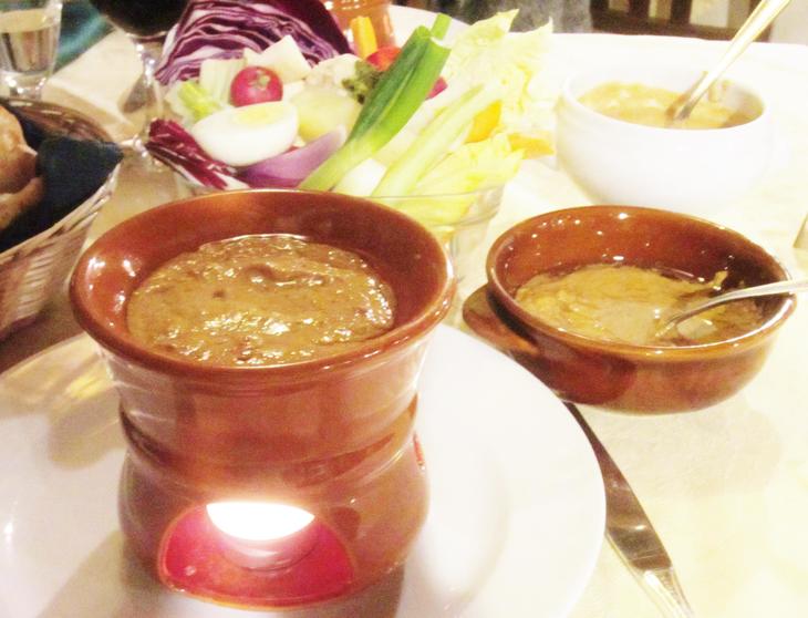 そんなアンチョビと軟らかく煮たにんにくをソースにし、そこへ野菜やパンをディップして食す。それがバーニャカウダです。