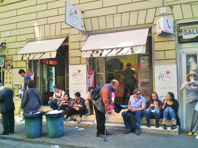 ↑ イタリア語で”アリーチェ”とは女性の名前、英語ではアリスやアリシアのイメージです。切り売りピザの店「アリーチェ」は小さいお店ですが、現在のところローマ市内には約70店舗あります。