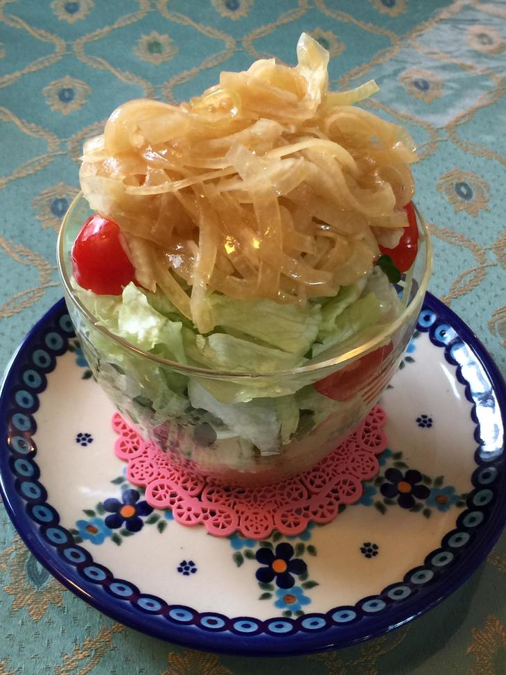自家製玉ねぎドレッシングで。五感が驚き騒ぐ!綺麗〜と♪ケーキの様にオシャレなサラダ。