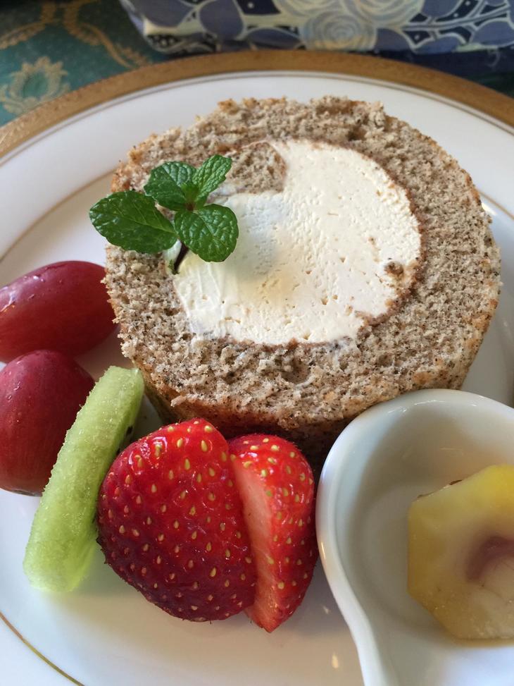 紅茶のロールケーキ 季節のフルーツ添え
