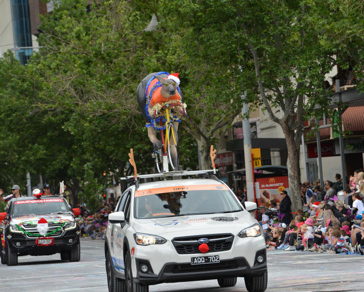 ↓自転車のワールドツァープロレースのツァーダウンアンダー(毎年1月開催)で登場のカンガルーもクリスマス気分になっています