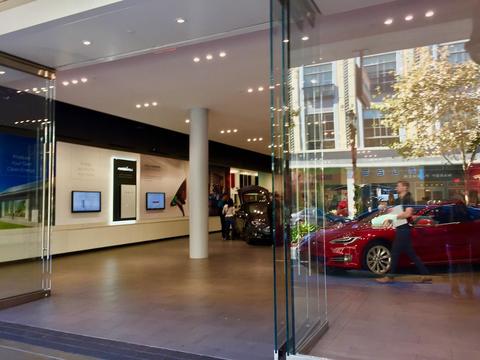 ショップの一角には『テスラ(TESLA)』のショールームがあった。 まさかお洋服買う感覚で車買っちゃうの? と思ってしまうほど店内にお客さんがいた。 恐るべしシリコンバレーの富裕層。