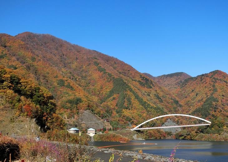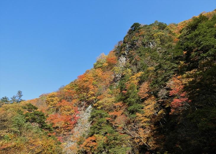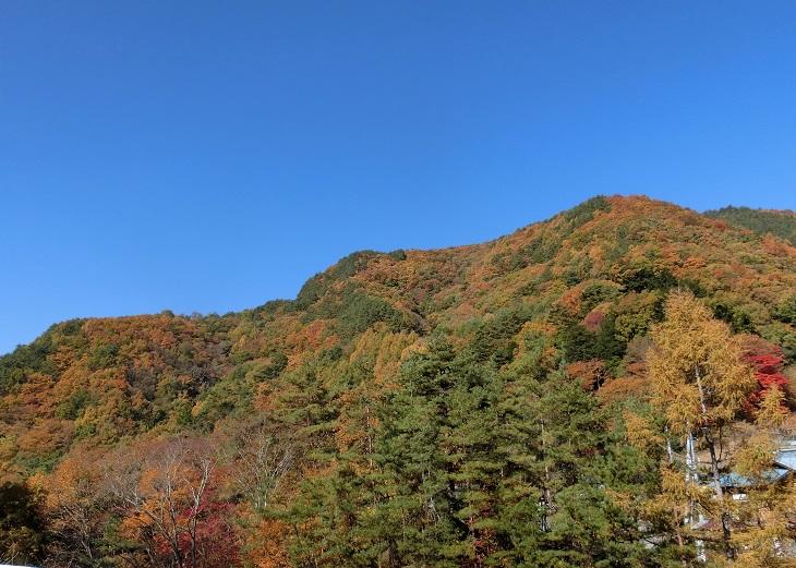 歩くにつれて、紅葉した山々が形を変えて見えていきます。