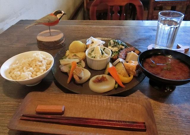 ワンプレートランチセット(税込み1,100円)は、野菜料理がたっぷり。天然酵母のパンor玄米ご飯が選べます。お味噌汁と、珈琲or紅茶orハーブティor野草茶もついています。