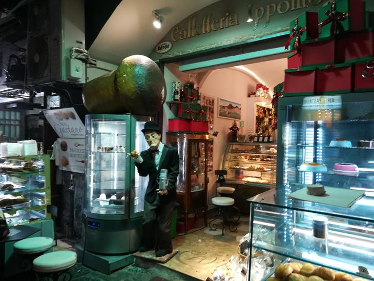今回の散策ではこのプルチネッラ銅像を見ることもメインの一つでした!