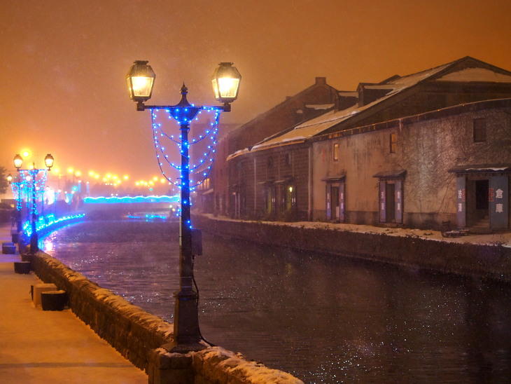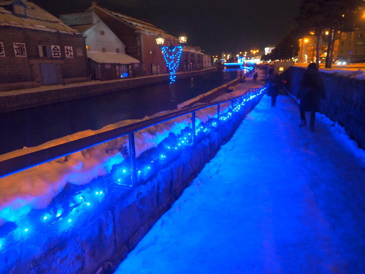 小樽運河は1/31までの期間、青色LED1万個で飾られた