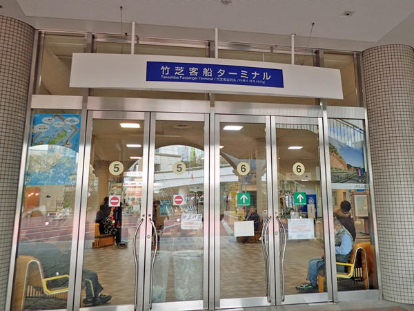 改札を出て竹芝桟橋までは徒歩10分前後です。