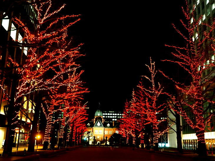 ホワイトイルミネーションは、札幌中心部各所で実施中。