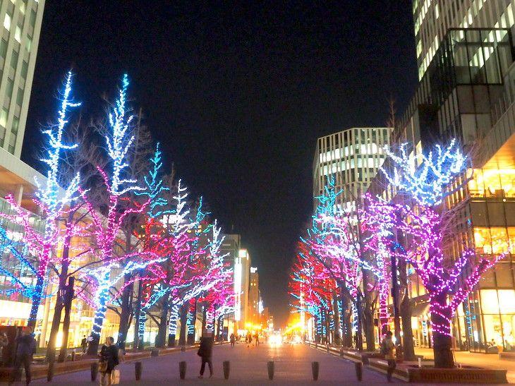 "Illuminated gingko trees in Akarenga Plaza"