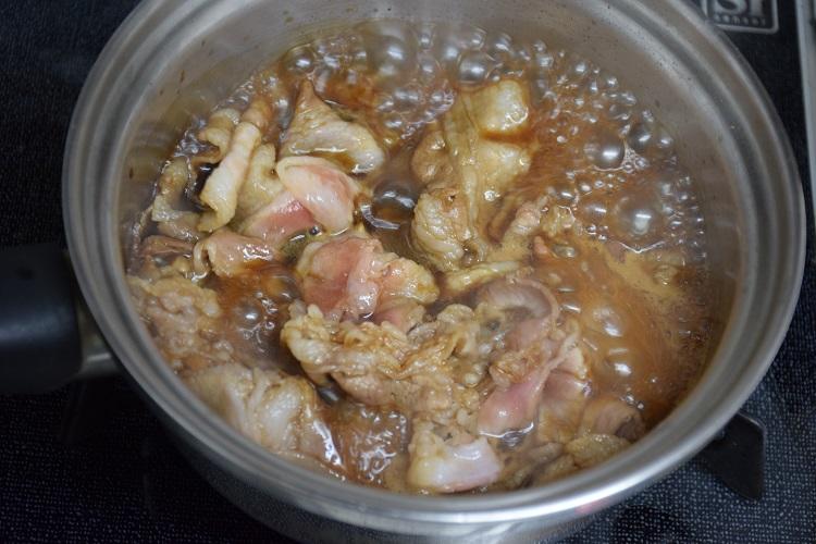 作り方1.豚バラ肉を食べやすい大きさにします。 生姜はみじん切り。 青ねぎは輪切り。2.●の調味料を小鍋に入れて混ぜ、豚バラ肉と生姜を入れて煮ます。