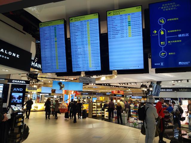 ↑ 出発ターミナル3(T3)です。ご利用になるターミナルは、航空会社により異なります。フィウミチーノ空港では、時々ターミナルの利用航空会社の見直しがされることがあります。巷のネット上のインフォメーションは古いことも多々ありますので、情報を鵜呑みにせず、空港に到着されてからご自身でモニターでご利用になるターミナル番号をご確認下さい。各ターミナルは繋がっており、徒歩で簡単に移動出来ますので、もし間違ったターミナルに行ってしまってもご心配はいりません。